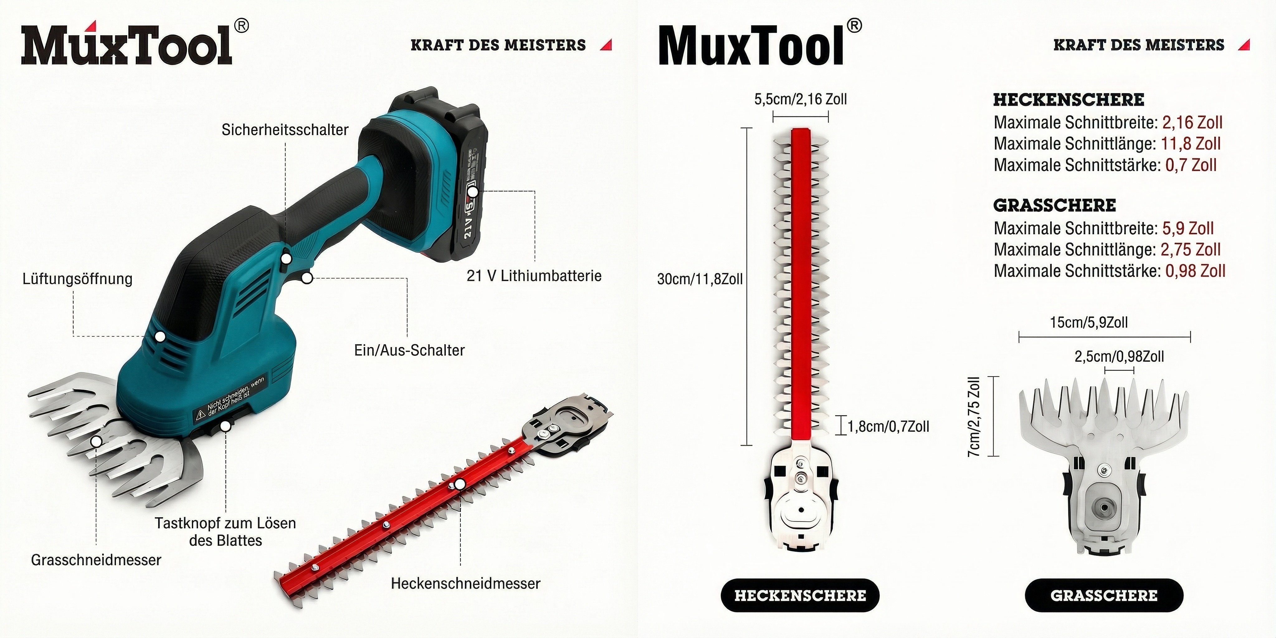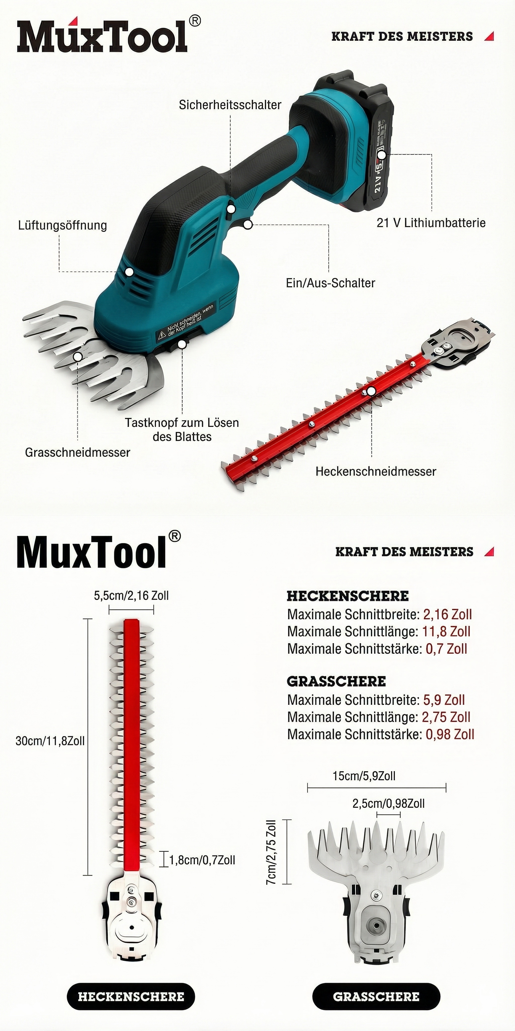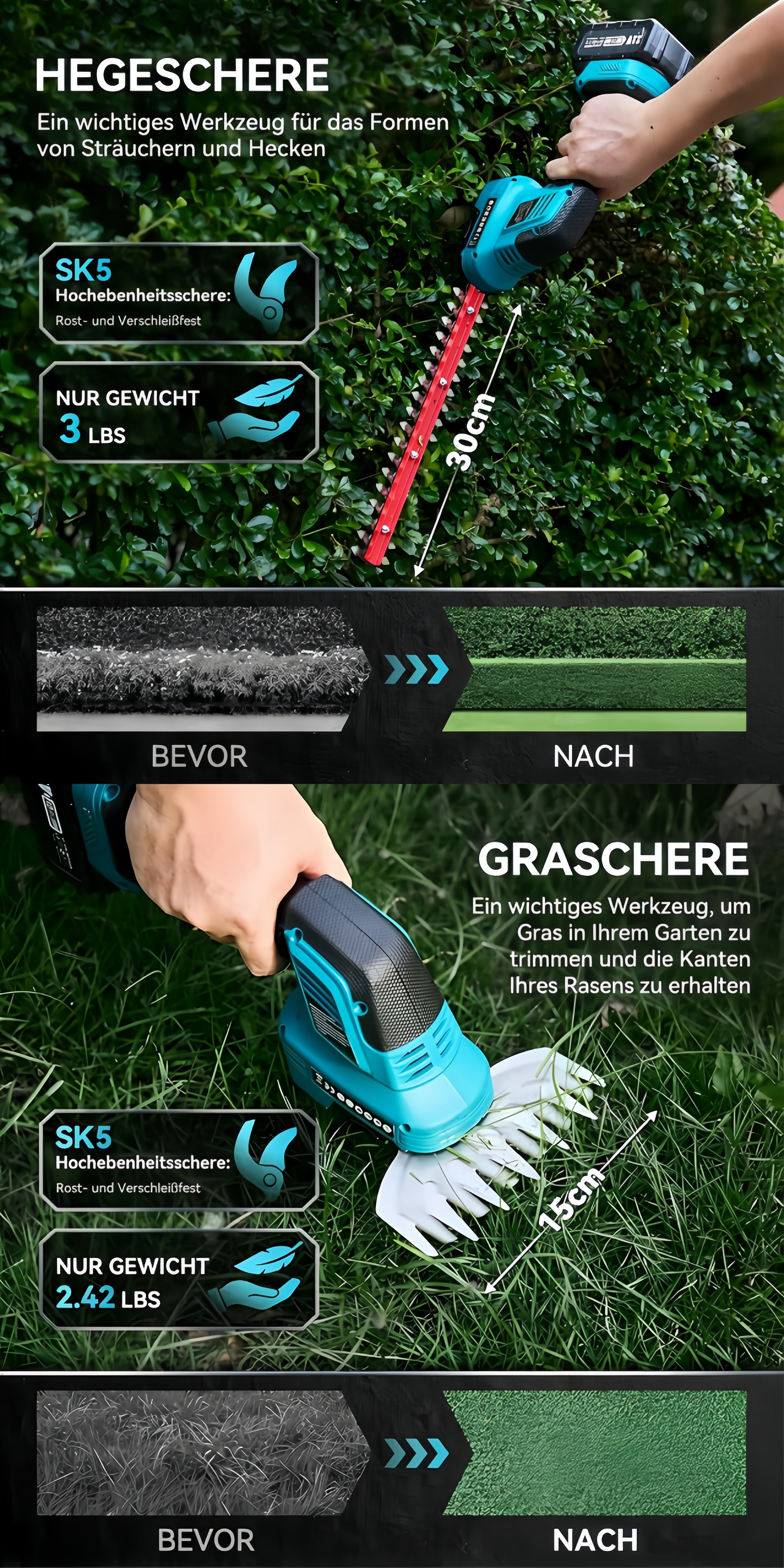 🌿 2‑in‑1 Elektrische Heckenschere – Schneller Klingenwechsel für perfekte Rasenkanten und Hecken!
